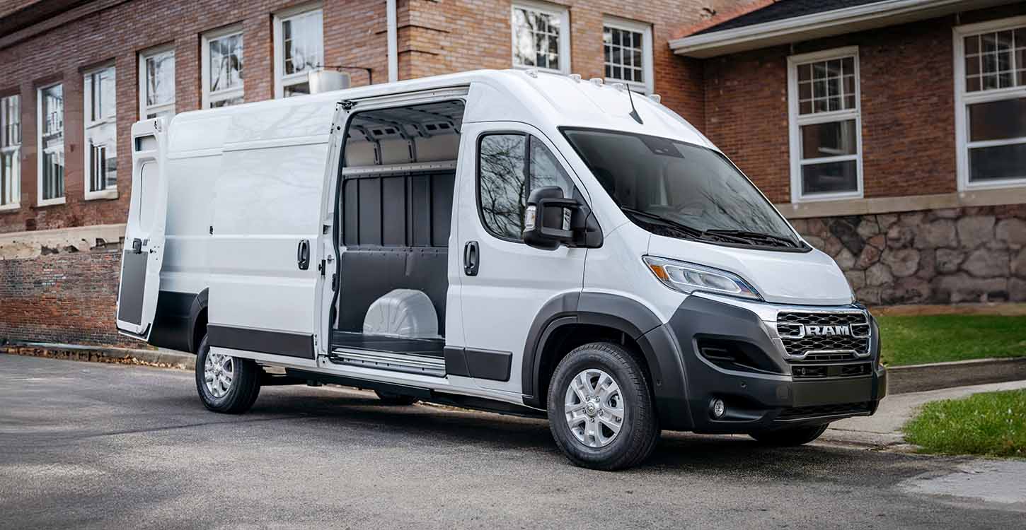 Do you need an efficient transit van for your business in Wabash? Then check out a new Ram Promaster EV, a fully electric fleet vehicle with ample room for cargo. The Promaster EV has a front-mounted electric motor that produces 268 horsepower and 302 pound-feet of torque, and can drive up to 162 miles on a full charge. With a maximum payload rating of 3,020 pounds and a maximum available cargo volume of 524 cubic feet, the Promaster EV is an efficient upgrade to any small business.