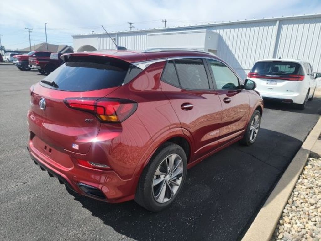 The Encore GX Select's striking Cinnabar Metallic exterior, accentuated by the Sport Touring Package's bold red accents and 18-inch wheels, commands attention on the road. This crossover's sleek and modern design, combined with its impressive capabilities, make it a standout in its class.